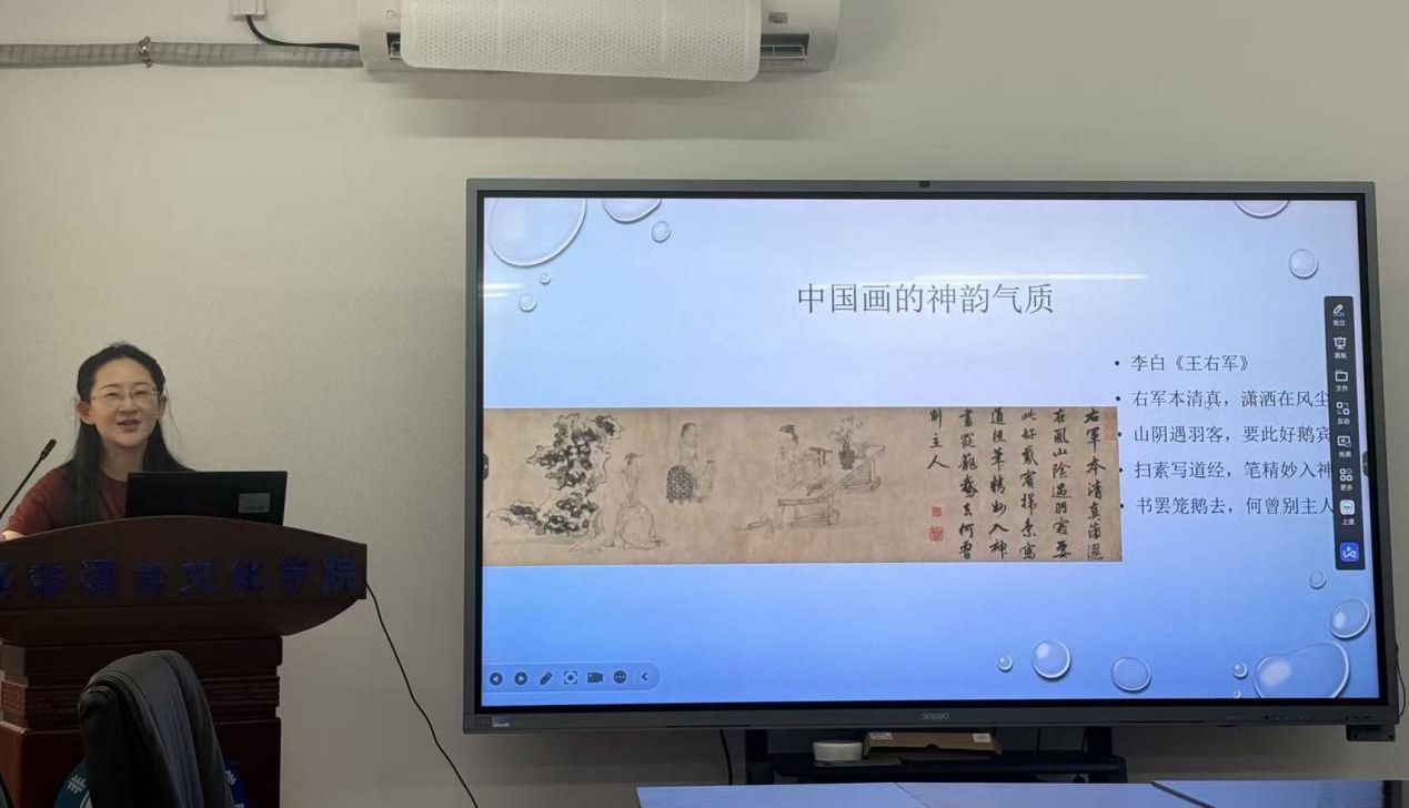 波斯语专业赵菡菡老师以"课程思政建设路径探索"为主题,通过专业课程案例展示了思政教育的创新实践。她通过波斯细密画与中国画的对比分析,深入阐释了不同文化元素交融的价值内涵,并以中伊坎儿井为例,展现了古代工程技术中蕴含的智慧结晶,为专业课程与思政教育深度融合提供了有益借鉴。
