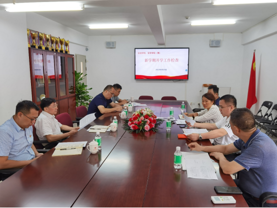 本网讯 8月29日上午,我校党委副书记李云明率队到我院检查新学期开学工作,校保卫部(武装部)部长何越晖、校团委书记纪彬、校党委组织部副部长刘郎陪同检查,我院院长陈多友、党委书记周秀娇、副院长张秀强、党委副书记曾智鹏和办公室主任邓桂生参加了新学期开学工作汇报会。