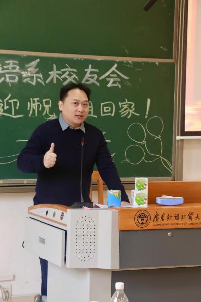 分享环节,07级校友游浩然讲述了自2011年毕业以来的奋斗历程,鼓励后辈们学好语言并把握机会,以阿语为跳板走向世界。